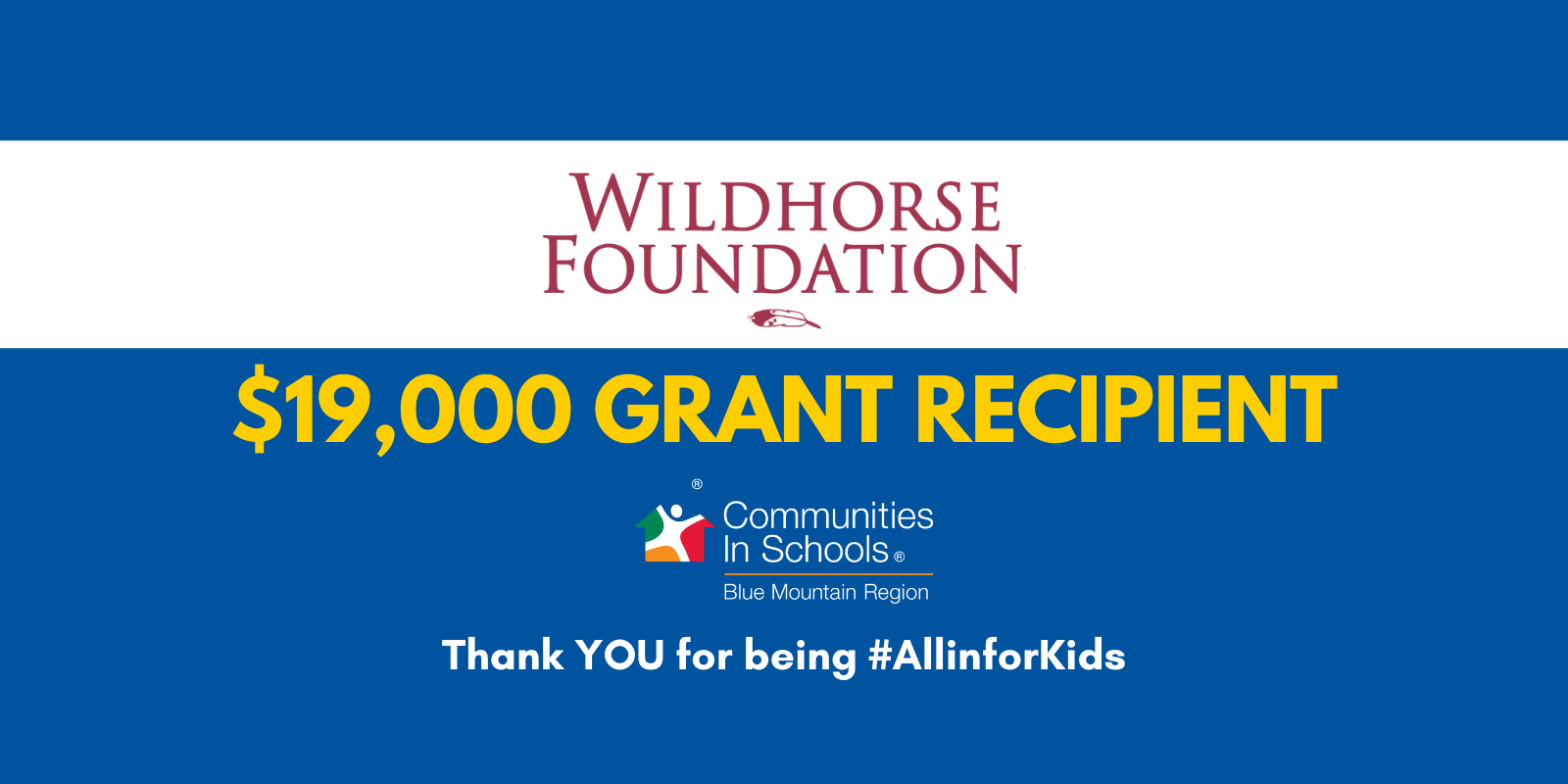 Walla Walla, WA — September 5, 2024 — Communities In Schools of the Blue Mountain Region (CISBM) is thrilled to announce the receipt of a $19,000 grant from The Wildhorse Foundation. This generous funding will play a crucial role in addressing food insecurity among students in our community.